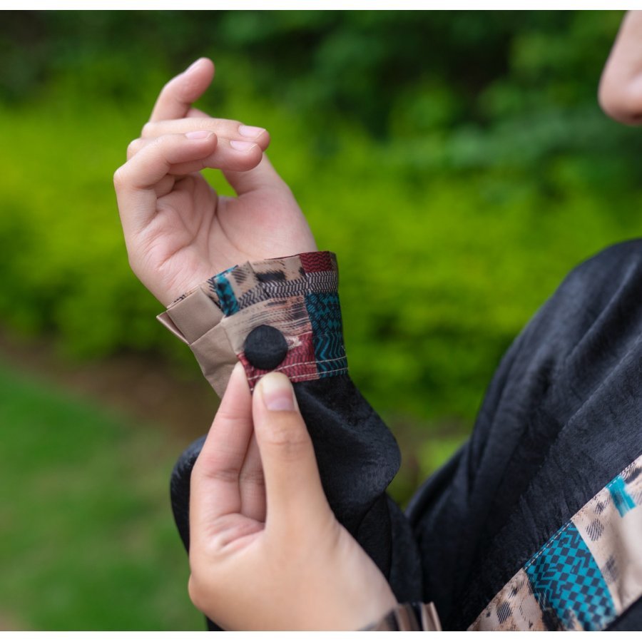 Kain Santorini. Kain Santorini merupakan jenis kain silk yang memiliki tekstur crinkle dan warna yang mengkilap atau berkilau dan terlihat mewah. Kain ini terbuat dari bahan sintetis polyester. Bahan lembut, jatuh, tidak menerawang, glossy atau berkilau serta menyerap keringat.